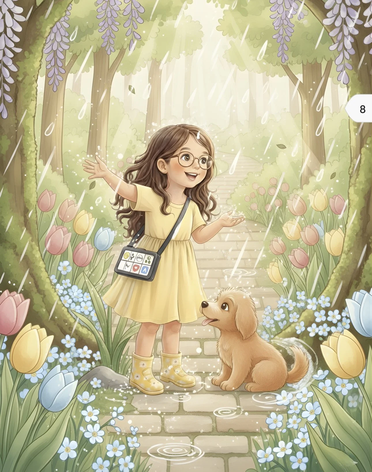 A gentle springtime story about noticing rain, sunshine, colors, and change — designed to support real communication.