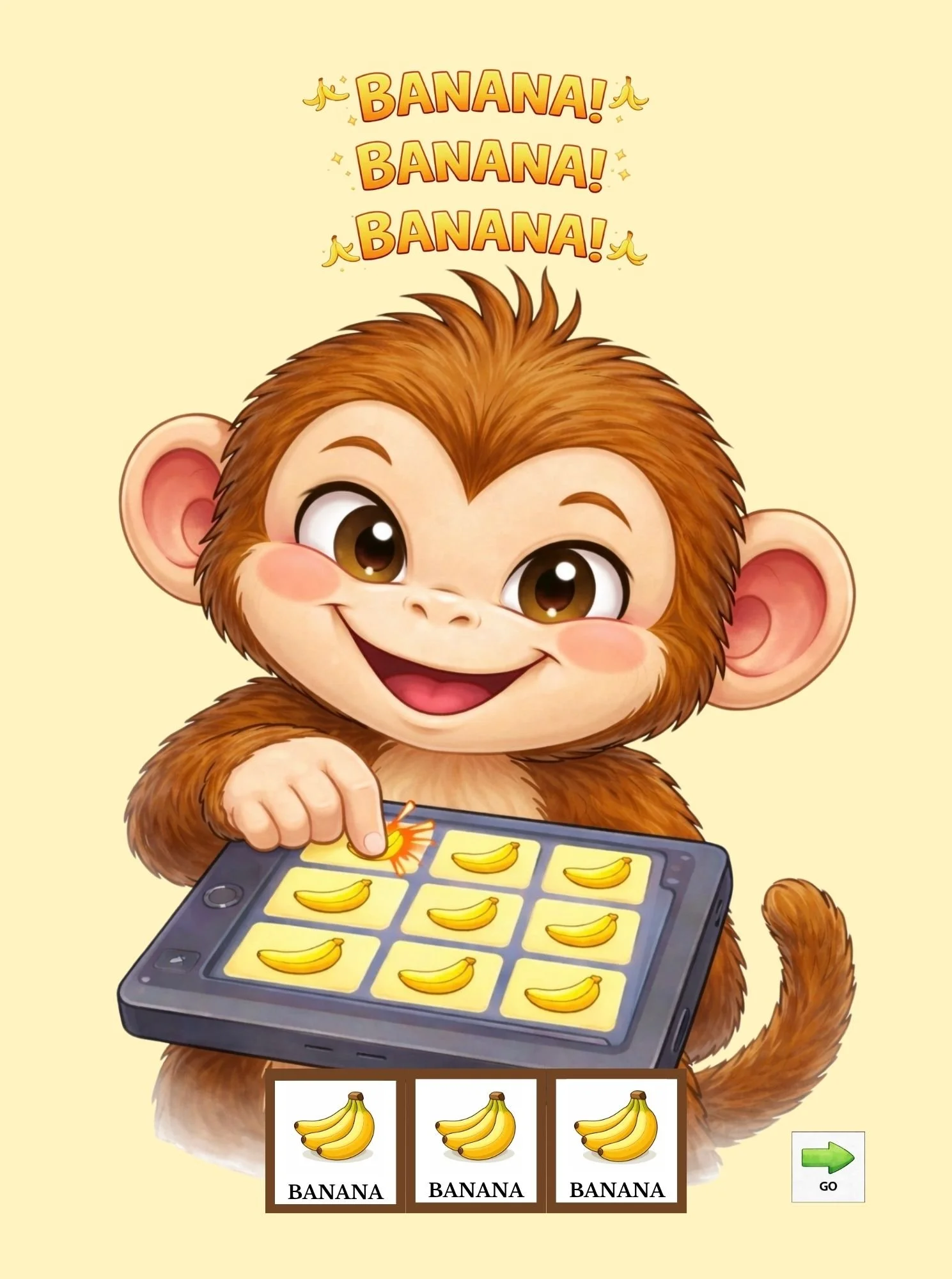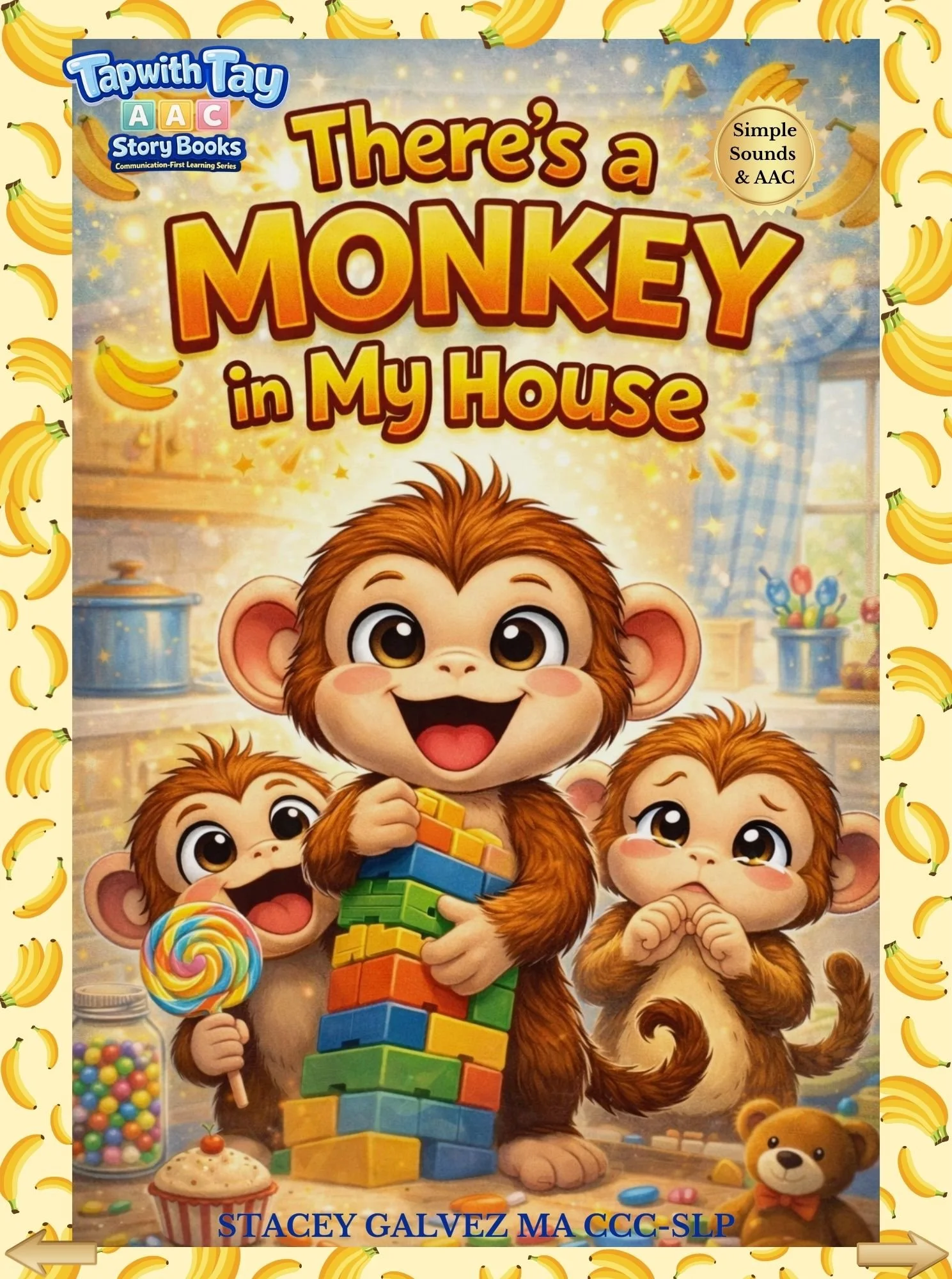 is a playful, sound-filled story designed to support early communication through the power of simple, meaningful sounds. Throughout the story, the monkey occasionally uses simple signs and AAC to communicate—modeling early ways to express “more,” “all done,” and other meaningful messages.