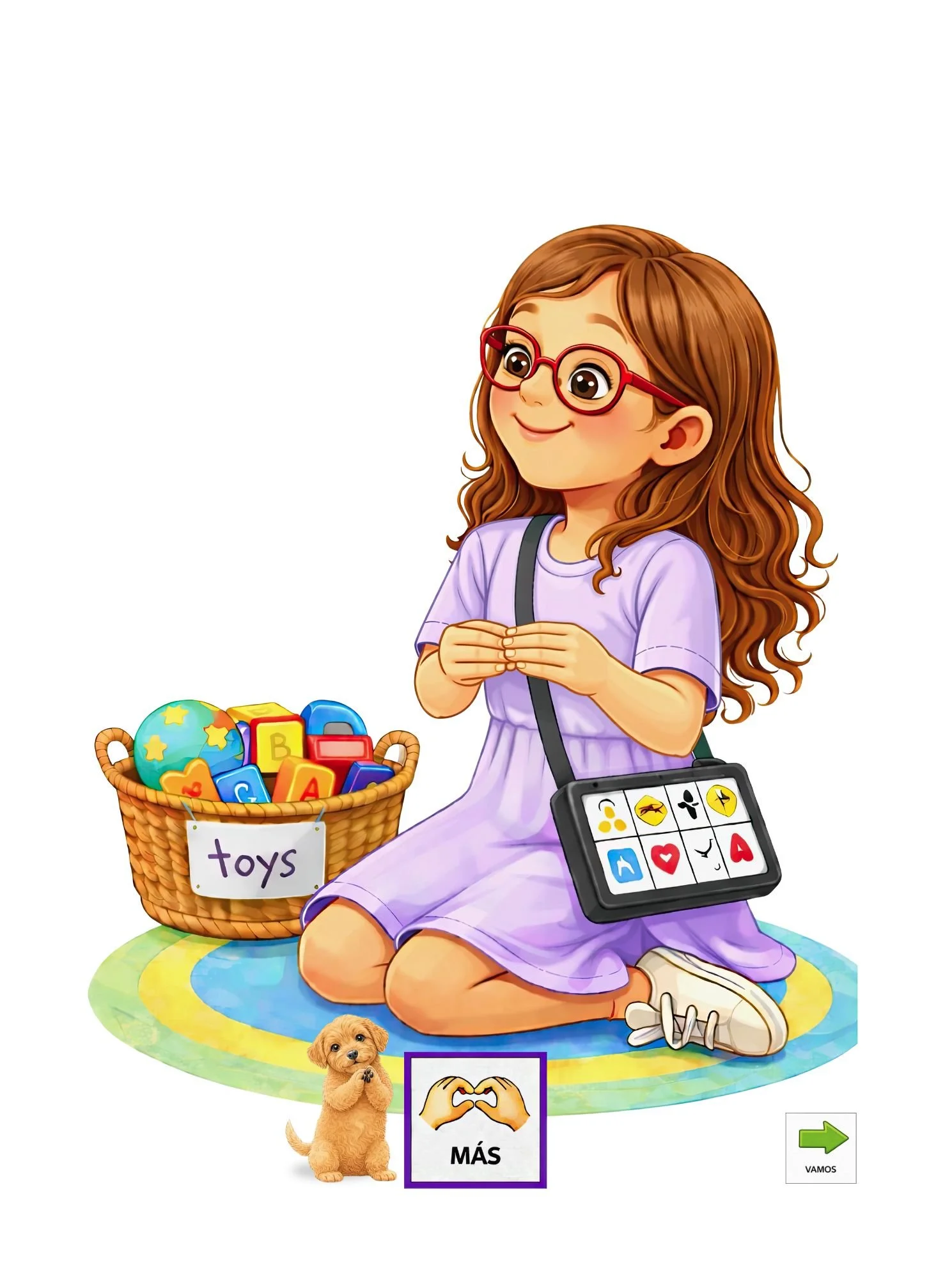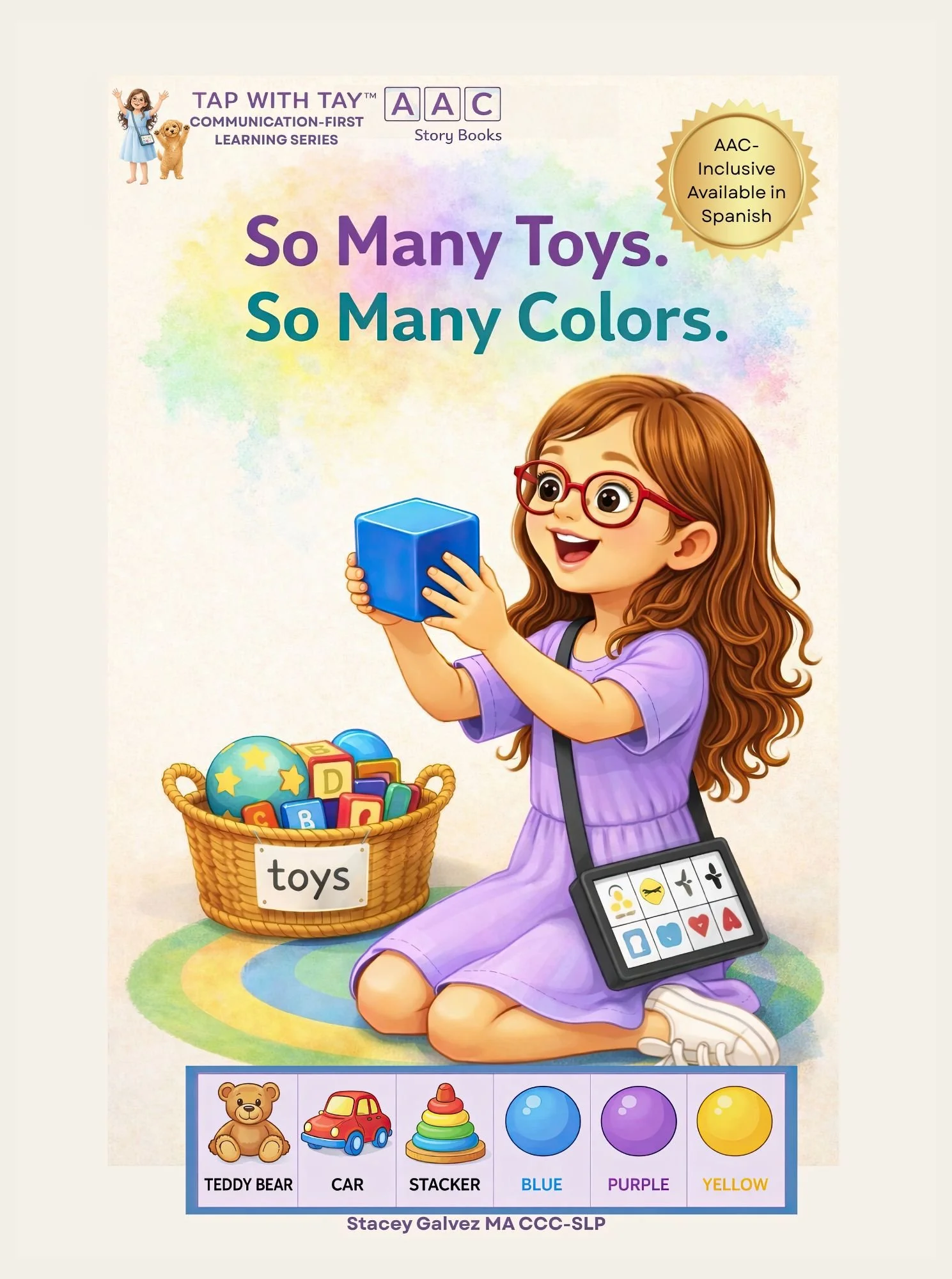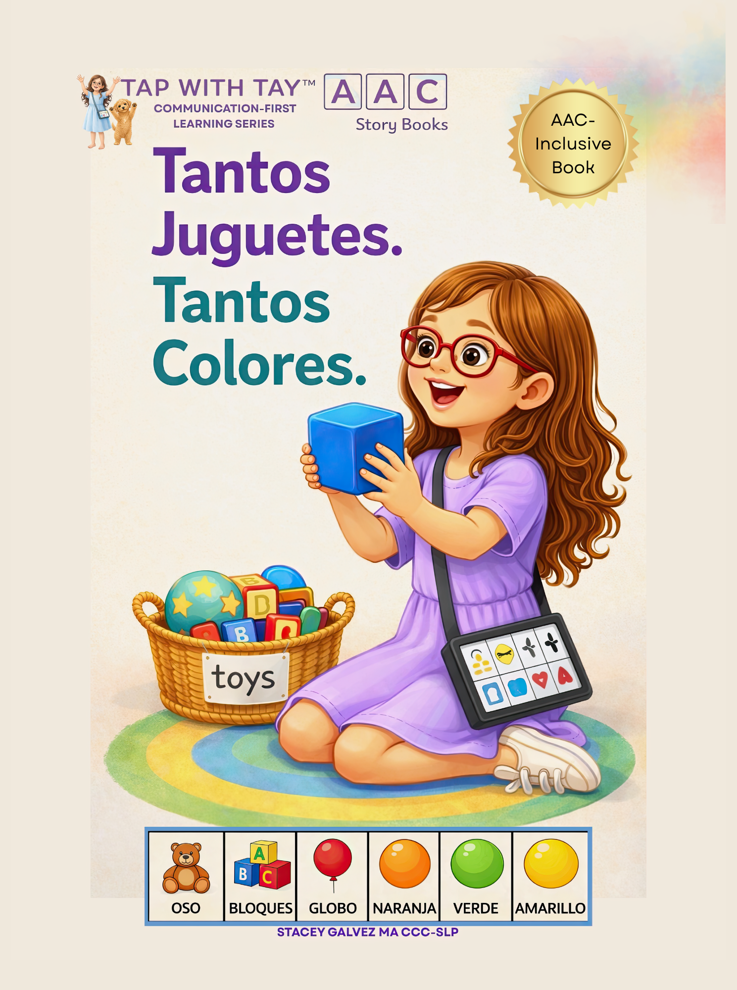 Tantos Juguetes. Tantos Colores. is an AAC-inclusive children’s book designed to support communication through simple, repetitive language and flexible modeling.
