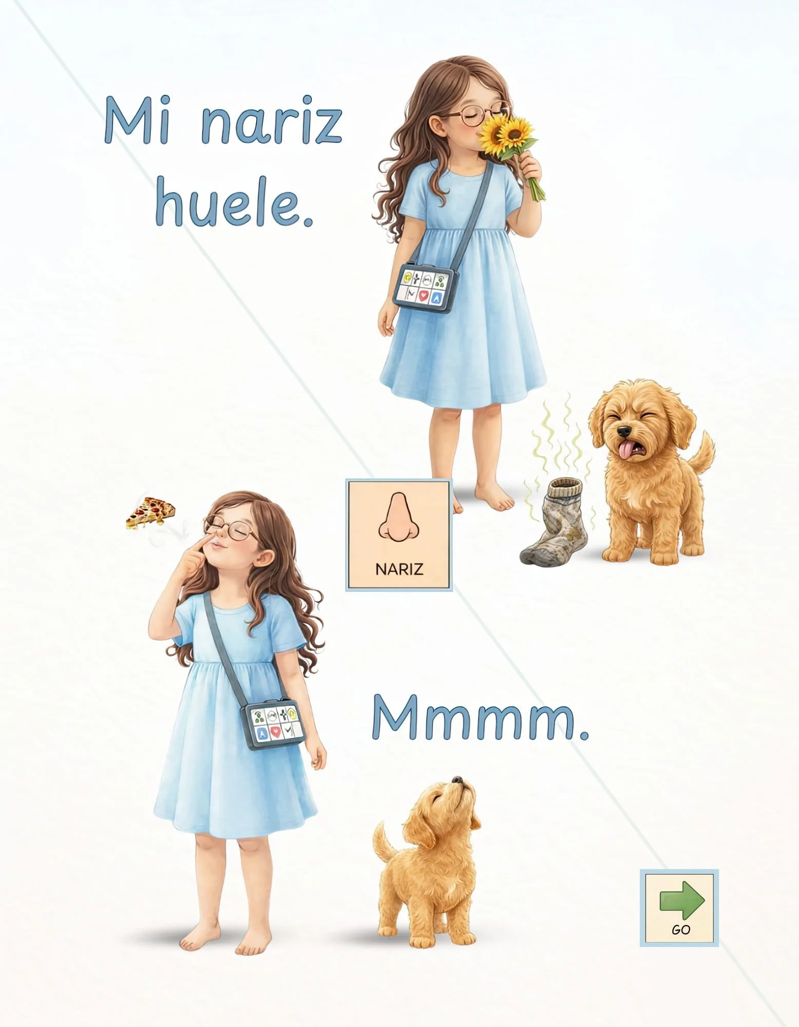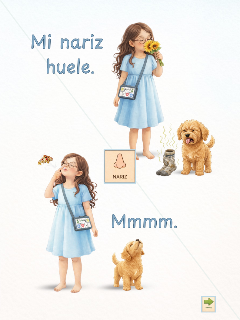Designed for emerging communicators, this book supports minimal navigation on AAC systems by allowing partners to remain within the same folder during shared reading.A Veces Sí. A Veces No. reinforces that both sí and no are meaningful, valid forms of communication—and that communication is about understanding, respect, and connection.