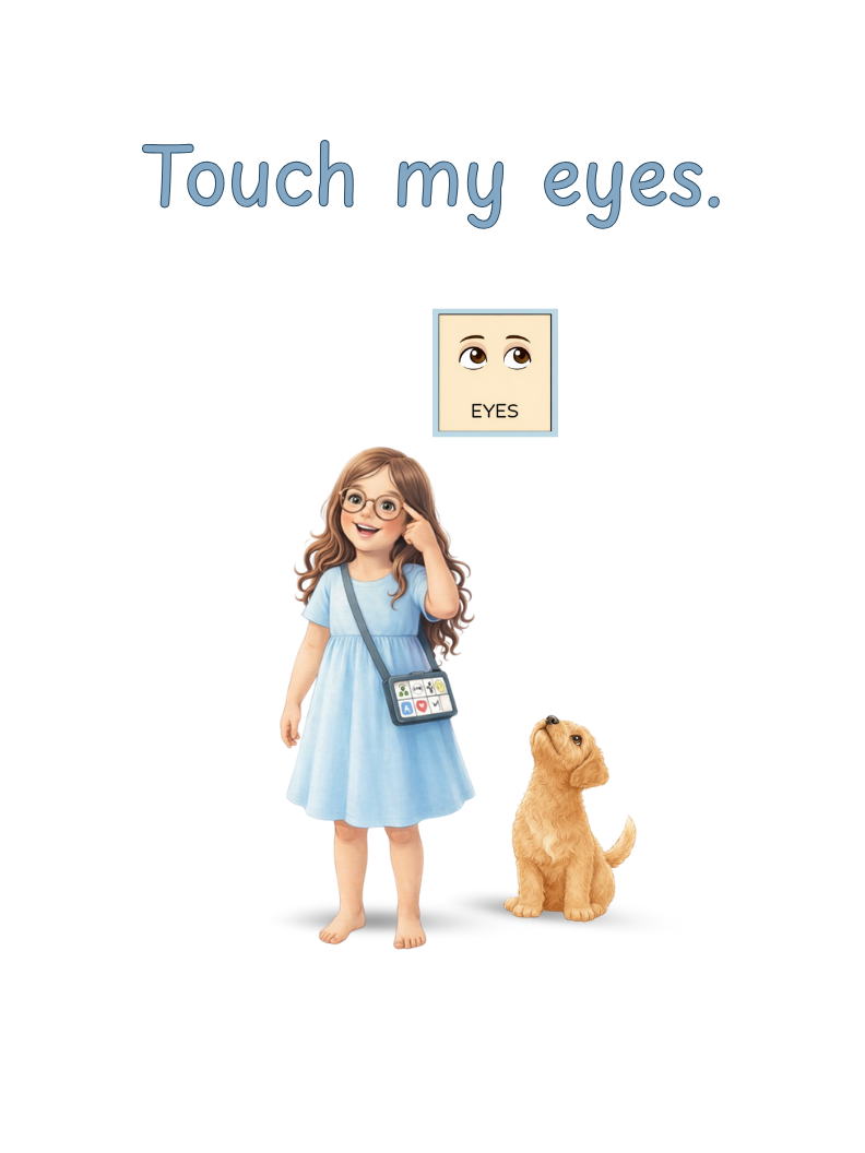 Designed for emerging communicators, this book allows children and communication partners to stay within the same AAC folder (the home screen on most devices), reducing navigation demands and supporting aided language input during shared reading and real-life decision-making. AAC is not required to learn and enjoy this book!